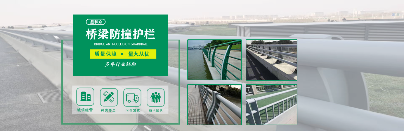 山东鑫和众金属制品有限公司主要产品有防撞护栏,桥梁护栏,道路护栏,河道护栏,不锈钢护栏等护栏。提供设计方案,一站式定制,包您满意价格优惠,欢迎来电咨询! 公司常年从事销售护栏防撞护栏,桥梁护栏,道路护栏,河道护栏,不锈钢护栏,桥梁钢护栏,河道灯光护栏等。产品广泛应用于桥梁、河道、旅游景区、道路、公路、公园、小区、景观、道路防撞等领域?! 」静肪捎糜胖什恍飧植牧?,符合相关标准。各种型号不锈钢复合管及护栏,质量严格把控。产品强度高、耐腐蚀、焊接牢固、抗冲击、性能好,防撞护栏结构简单、美观实用大方?! 』队袄炊┕海?..